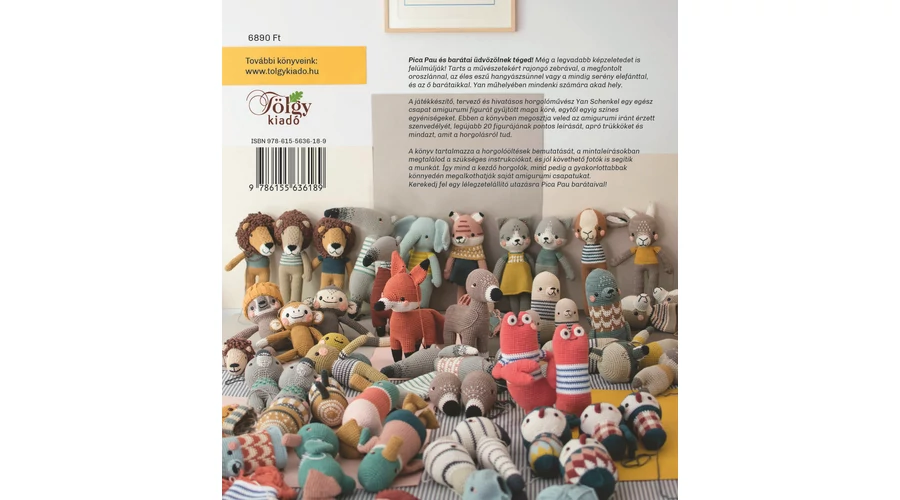 A könyv tartalmazza a horgolóöltések bemutatását, a mintaleírásokban megtalálja a szükséges instrukciókat, és jól követhető fotók is segítik a munkát. Így mind a kezdő horgolók, mind pedig a gyakorlottabbak könnyedén megalkothatják saját amigurumi csapatukat. Kerekedjen fel egy lélegzetelállító utazásra Pica Pau barátaival!