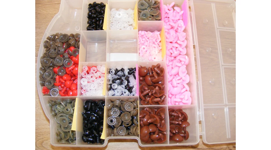 Rendszerezze biztonsági szemeket és orrokat egy dobozban átlátható módon. A tárolódoboz 17 különböző méretű rekeszt tartalmaz.