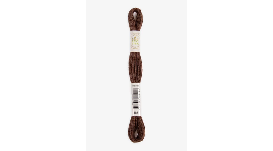 DMC Eco Vita hímzőfonal 100%-ban organikus, merinó gyapjú tartalmú fonal. Teljesen természetes összetevőkkel festették például dió, rebarbara, indigó és boróka. Az Eco Vita egy nagyon sokoldalú cérna, amely a kézműves technikák széles skálájához alkalmas. Egyenletes vastagsága és finom csavarása tökéletes kézi hímzéshez, keresztszemes hímzéshez, lyukasztótűhöz, szövéshez és javításhoz. A gyapjúszálat egyszálúként használják, és nem oszthatók. Körülbelül ugyanolyan vastagságú, mint a DMC Mouliné Spécial három szála. Hossza 16 méter.