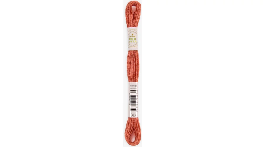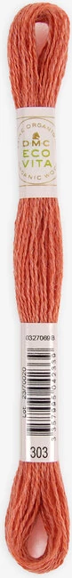 DMC Eco Vita hímzőfonal 100%-ban organikus, merinó gyapjú tartalmú fonal. Teljesen természetes összetevőkkel festették például dió, rebarbara, indigó és boróka. Az Eco Vita egy nagyon sokoldalú cérna, amely a kézműves technikák széles skálájához alkalmas. Egyenletes vastagsága és finom csavarása tökéletes kézi hímzéshez, keresztszemes hímzéshez, lyukasztótűhöz, szövéshez és javításhoz. A gyapjúszálat egyszálúként használják, és nem oszthatók. Körülbelül ugyanolyan vastagságú, mint a DMC Mouliné Spécial három szála. Hossza 16 méter.