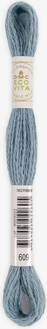 DMC Eco Vita hímzőfonal 100%-ban organikus, merinó gyapjú tartalmú fonal. Teljesen természetes összetevőkkel festették például dió, rebarbara, indigó és boróka. Az Eco Vita egy nagyon sokoldalú cérna, amely a kézműves technikák széles skálájához alkalmas. Egyenletes vastagsága és finom csavarása tökéletes kézi hímzéshez, keresztszemes hímzéshez, lyukasztótűhöz, szövéshez és javításhoz. A gyapjúszálat egyszálúként használják, és nem oszthatók. Körülbelül ugyanolyan vastagságú, mint a DMC Mouliné Spécial három szála. Hossza 16 méter.