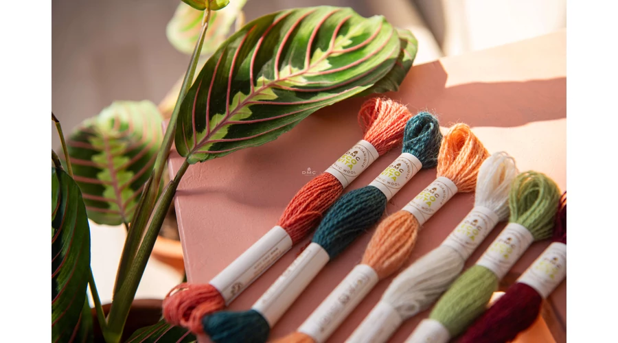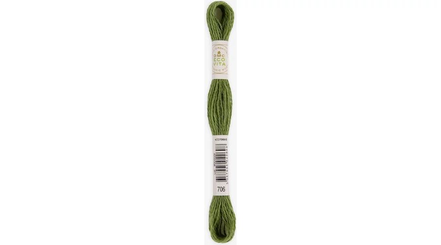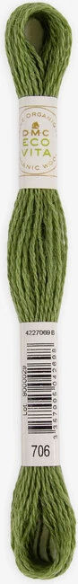 DMC Eco Vita hímzőfonal 100%-ban organikus, merinó gyapjú tartalmú fonal. Teljesen természetes összetevőkkel festették például dió, rebarbara, indigó és boróka. Az Eco Vita egy nagyon sokoldalú cérna, amely a kézműves technikák széles skálájához alkalmas. Egyenletes vastagsága és finom csavarása tökéletes kézi hímzéshez, keresztszemes hímzéshez, lyukasztótűhöz, szövéshez és javításhoz. A  gyapjúszálat egyszálúként használják, és nem oszthatók. Körülbelül ugyanolyan vastagságú, mint a DMC Mouliné Spécial három szála. Hossza 16 méter.