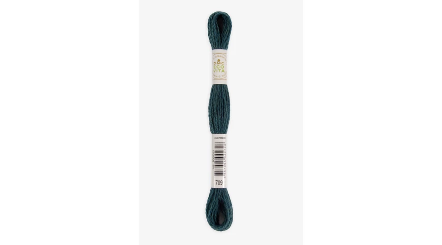 DMC Eco Vita hímzőfonal 100%-ban organikus, merinó gyapjú tartalmú fonal. Teljesen természetes összetevőkkel festették például dió, rebarbara, indigó és boróka. Az Eco Vita egy nagyon sokoldalú cérna, amely a kézműves technikák széles skálájához alkalmas. Egyenletes vastagsága és finom csavarása tökéletes kézi hímzéshez, keresztszemes hímzéshez, lyukasztótűhöz, szövéshez és javításhoz. A gyapjúszálat egyszálúként használják, és nem oszthatók. Körülbelül ugyanolyan vastagságú, mint a DMC Mouliné Spécial három szála. Hossza 16 méter.