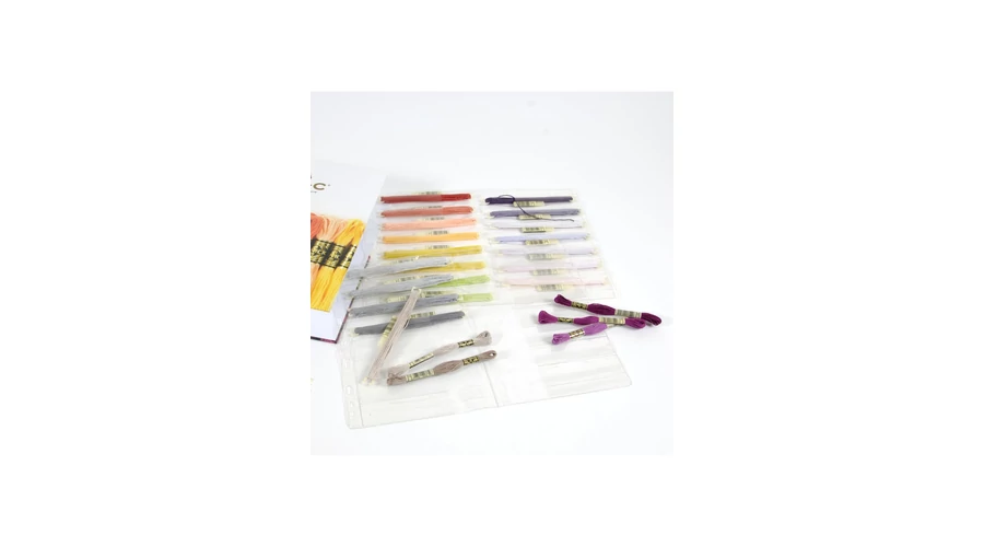 Gyűjtse fonalait DMC mappában! Hímzőfonalait tegye fonaltartó pálcikára és egy speciális műanyag fonalrendező fóliába. Ezt a megtöltött fóliát a gyűrűs mappába tudja lefűzni. A mappában műanyag fóliába könnyedén rögzíthetők a különböző színű fonalak, így elkerülhető a kuszaság és a fonalak összegubancolódása.
