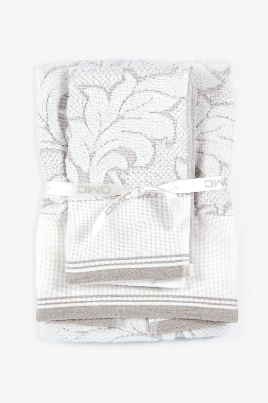 " Barokk" virágos ihletésű design. A gyönyörű DMC nyomott mintás törölköző szett 2 darabos, tartalmaz egy 50x100 cm nagyságú törölközőt és egy 30x50 cm méretű kéztörlőt. Mindkettő törölköző keresztszemesen hímezhető, és 11 ct-os ekrü aida szegéllyel van ellátva. A készlethez 2 darab minta is tartozik, csak hogy könnyebb legyen a hímzés.