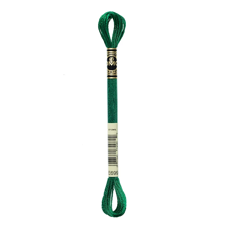 DMC Light effect hímzőfonal használata fémes csillogó hatást ad a hímzésnek. Hat könnyen osztható szálból áll, melyet egyedül önmagába használva vagy kombinálva DMC Mouliné fonallal, ha csak egy kicsi csillogó hatást szeretne kiváltani. Érdemes rövidebb szálat használni a hímzéshez, mert akkor könnyebb lesz vele dolgozni.