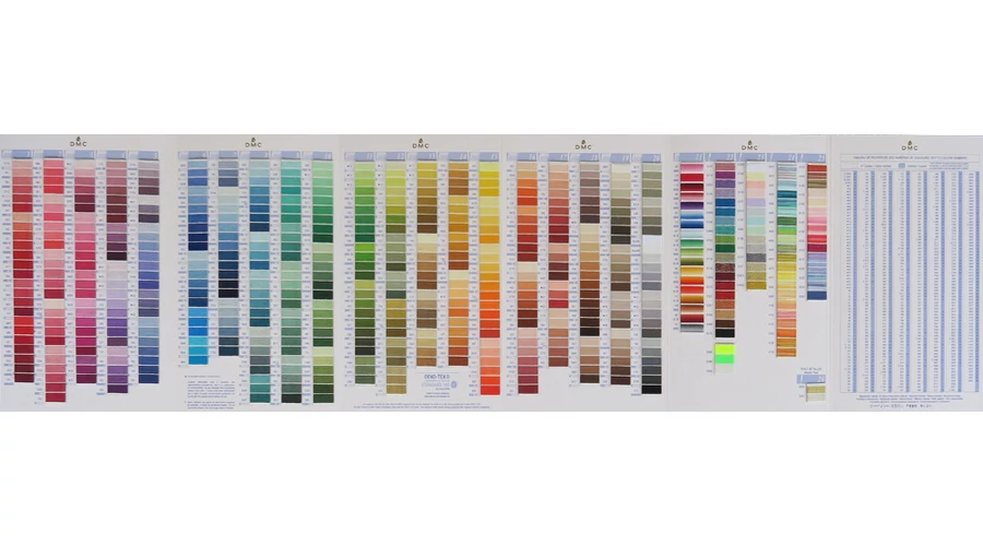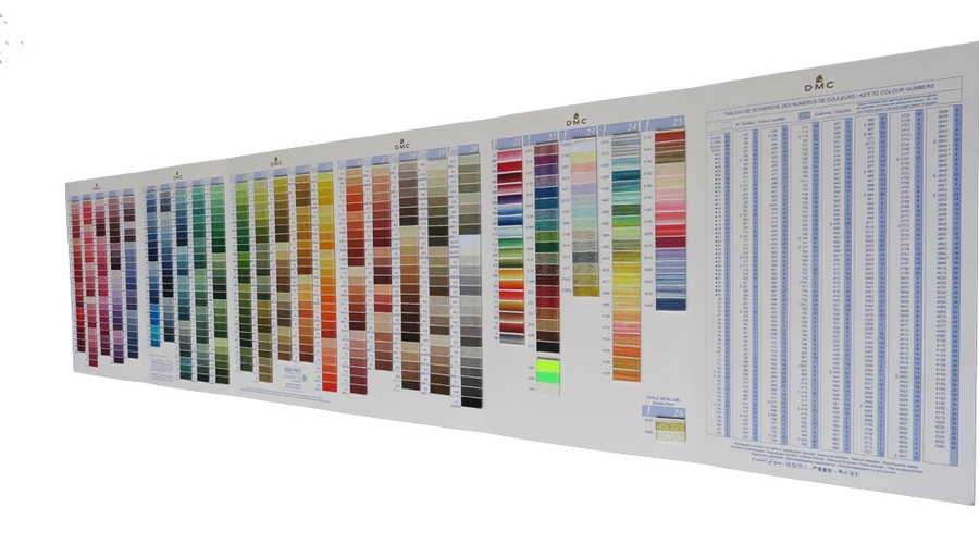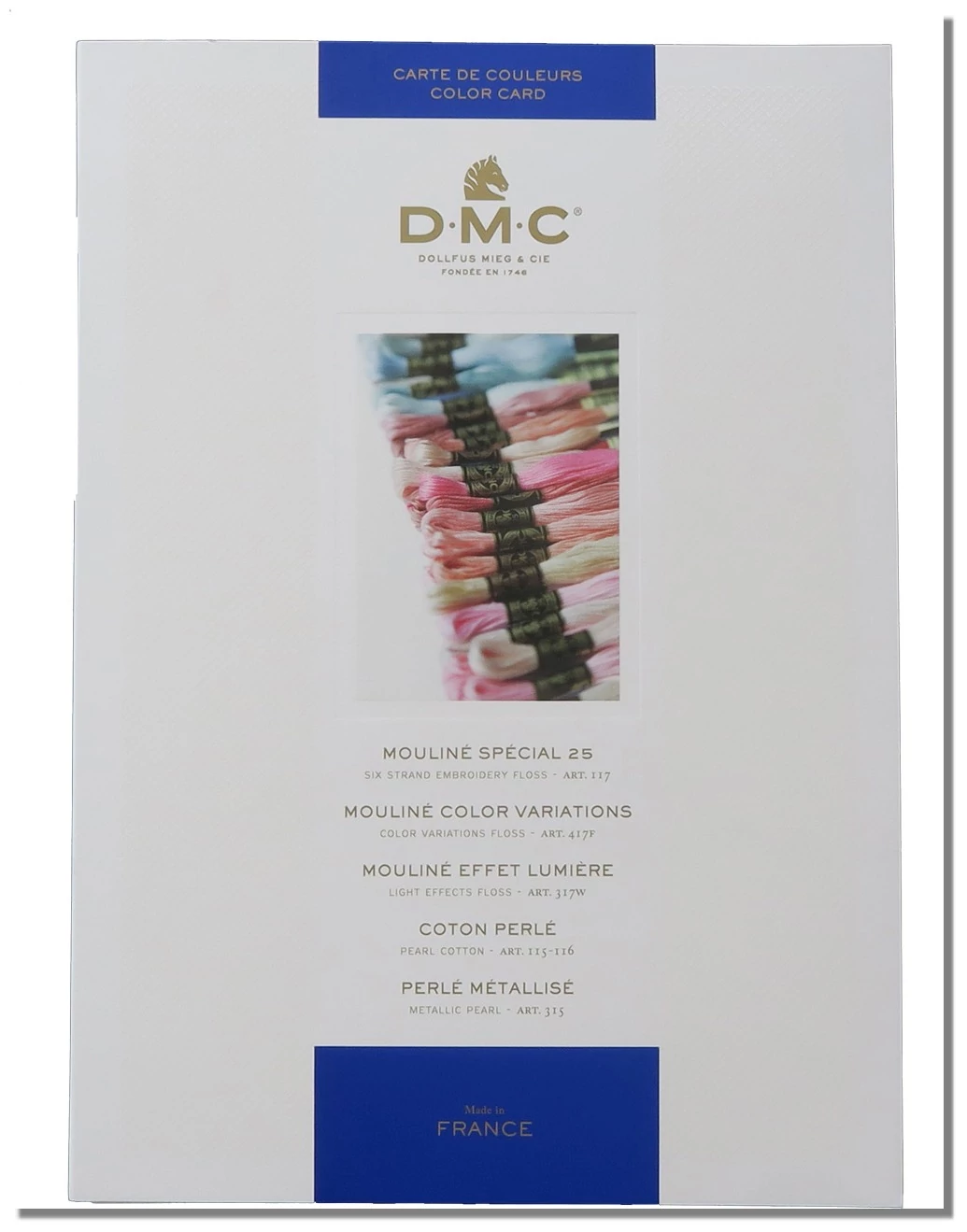A tökéletes színpaletta kiválasztása nem egyszerű feladat, ezért a DMC gyártó kifejlesztett egy olyan színkártyát, mely tartalmazza az összes DMC Mouliné fonal különböző árnyalatait, Dmc színátmenetes, Dmc Coloris, Dmc Effect, Cotton Perlé és Metál Perlé fonalak élethű színmintáját.