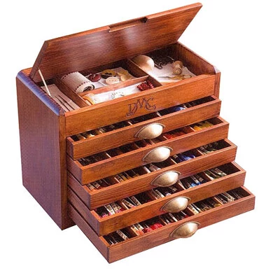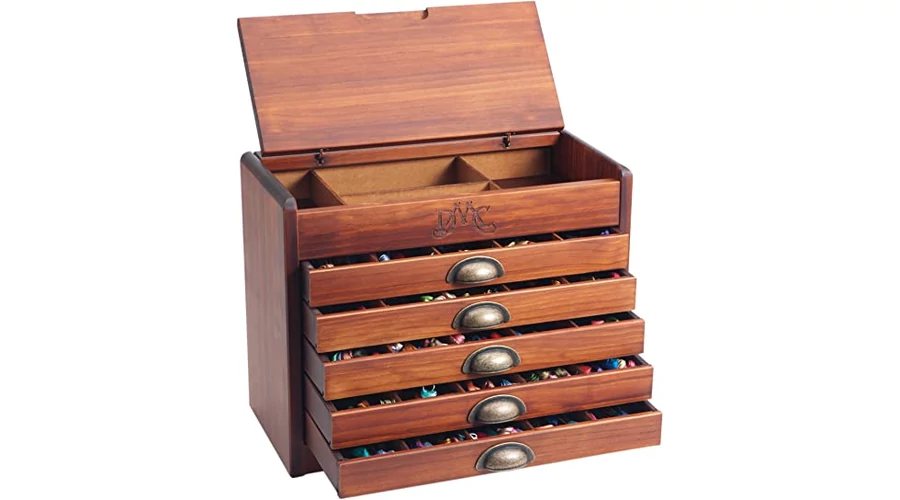 Exkluzív DMC fa tárolódoboz 500 DMC Mouliné fonallal