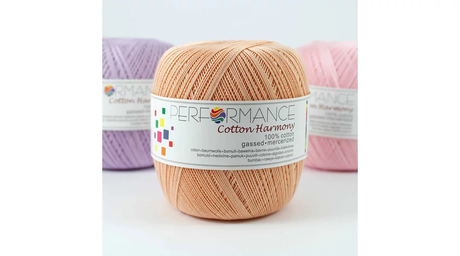 Performance Cotton Harmony horgolófonal mercerizált erős, puha, selymes anyag. Nagy színválasztékának köszönhetően kiváló választás ez a minőségi horgolófonal.