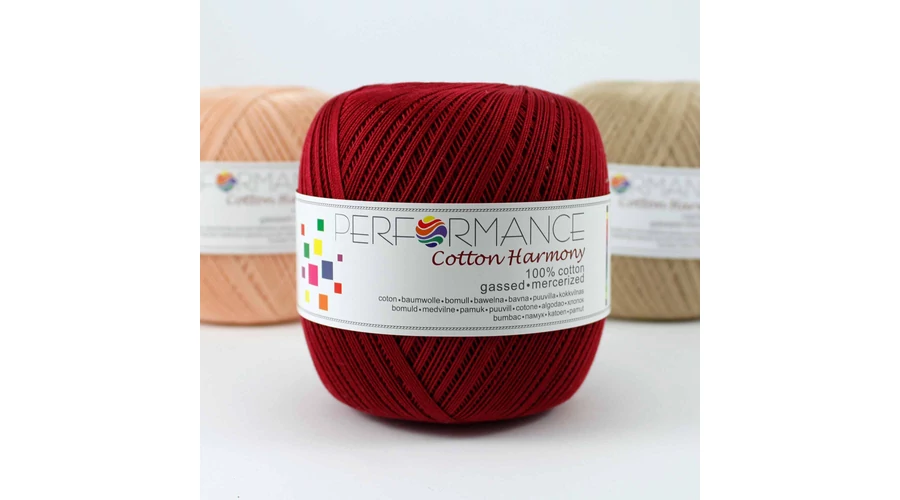 Performance Cotton Harmony horgolófonal mercerizált erős, puha, selymes anyag. Nagy színválasztékának köszönhetően kiváló választás ez a minőségi horgolófonal.