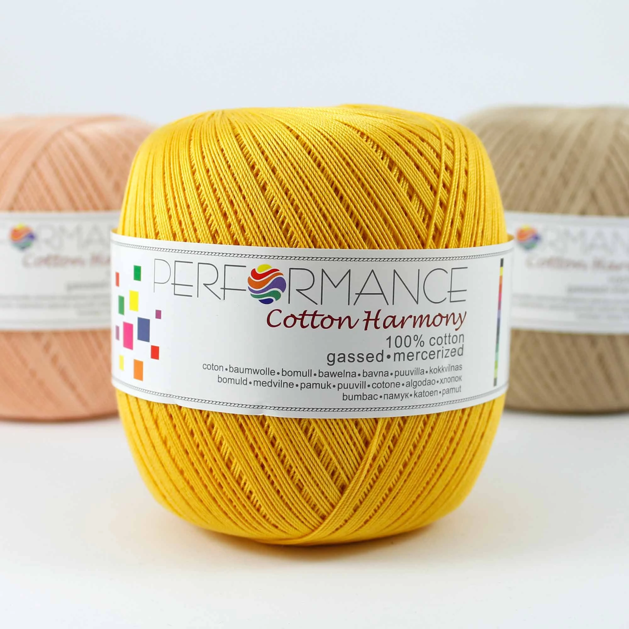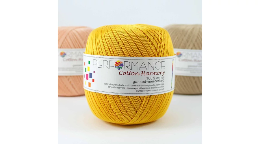 Performance Cotton Harmony horgolófonal mercerizált erős, puha, selymes anyag. Nagy színválasztékának köszönhetően kiváló választás ez a minőségi horgolófonal.
