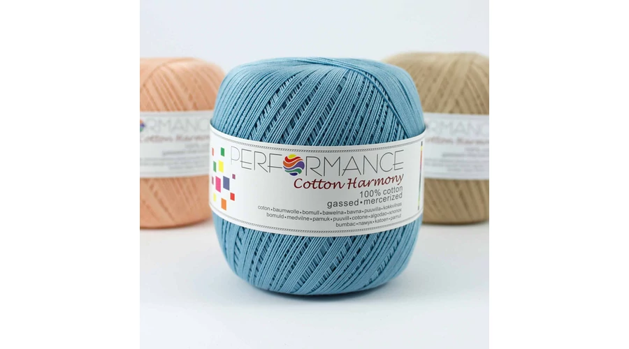 Performance Cotton Harmony horgolófonal mercerizált erős, puha, selymes anyag. Nagy színválasztékának köszönhetően kiváló választás ez a minőségi horgolófonal.