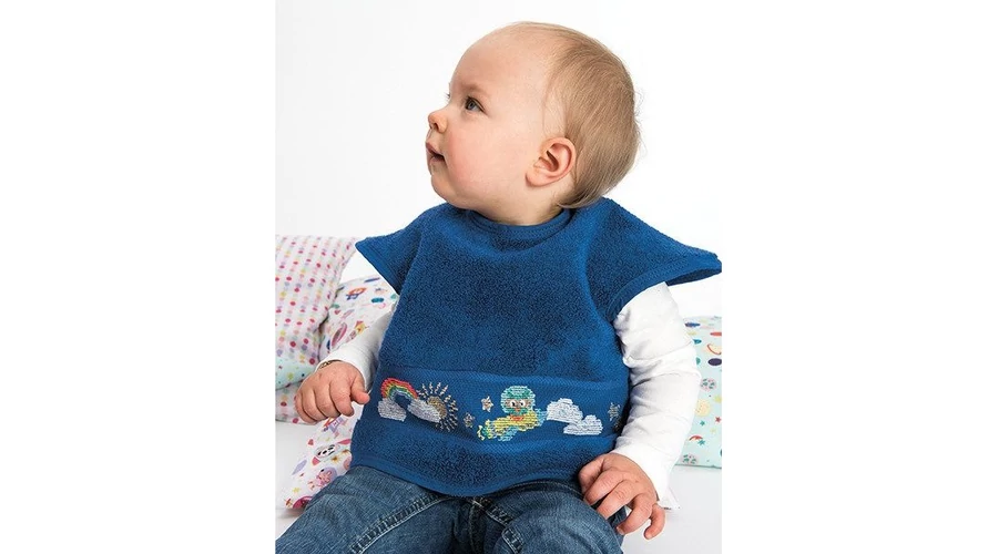 Rico design keresztszemesen hímezhető bebújós előke kiváló minőségű, pehelykönnyű, puha frottír anyagból készült, mely megtartja alakját, tartósságát, akár 60 fokon mosva. Szárítógépben szárításra is alkalmas. Pihe puha szálainak köszönhetően kellemes viselet a babának.