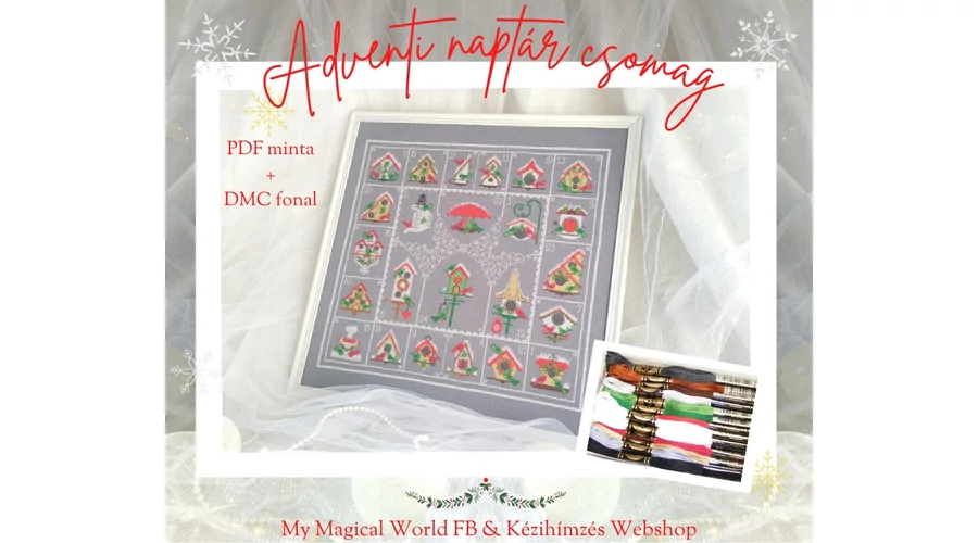 Magyar tervezők által készített mintát, melyet PDF formátumban email-en küldünk el Önnek, kiegészítettük a hozzávaló DMC hímzőfonalakkal. Az ár a mintát és a hímzéshez szükséges 13 db Dmc Mouliné hímzőfonalat tartalmazza.
