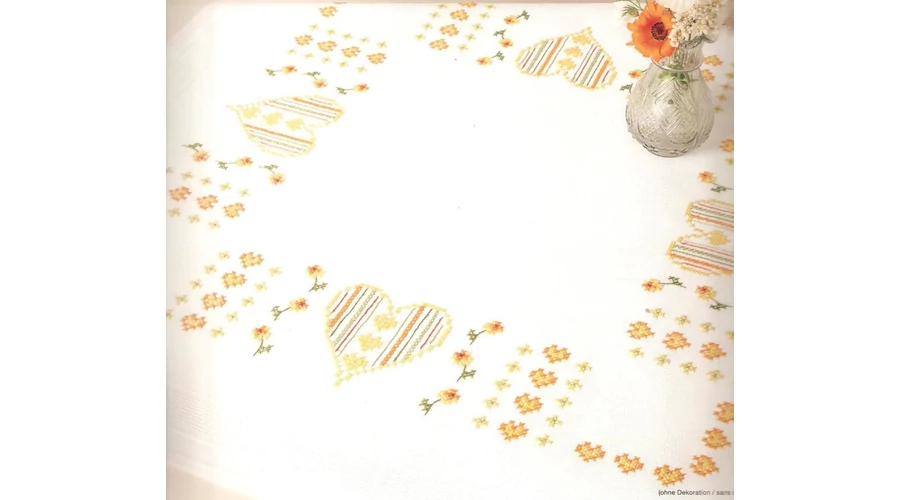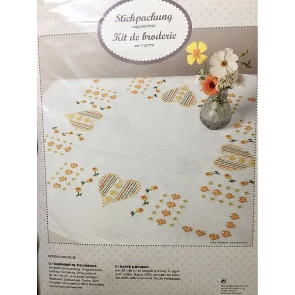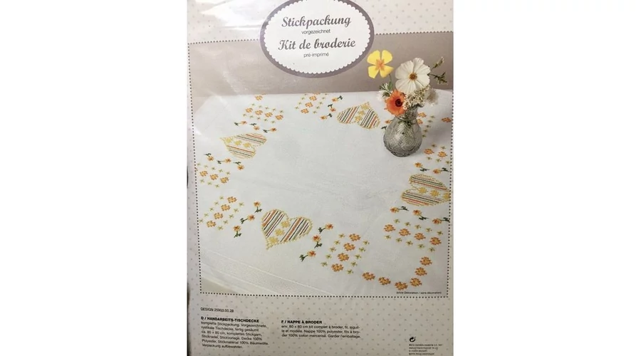 Előnyomott, keresztszemes öltéssel hímezhető asztalterítő készlet. Csomag tartalma: terítő, hímző cérna, tű, leírás