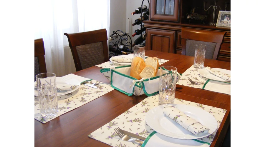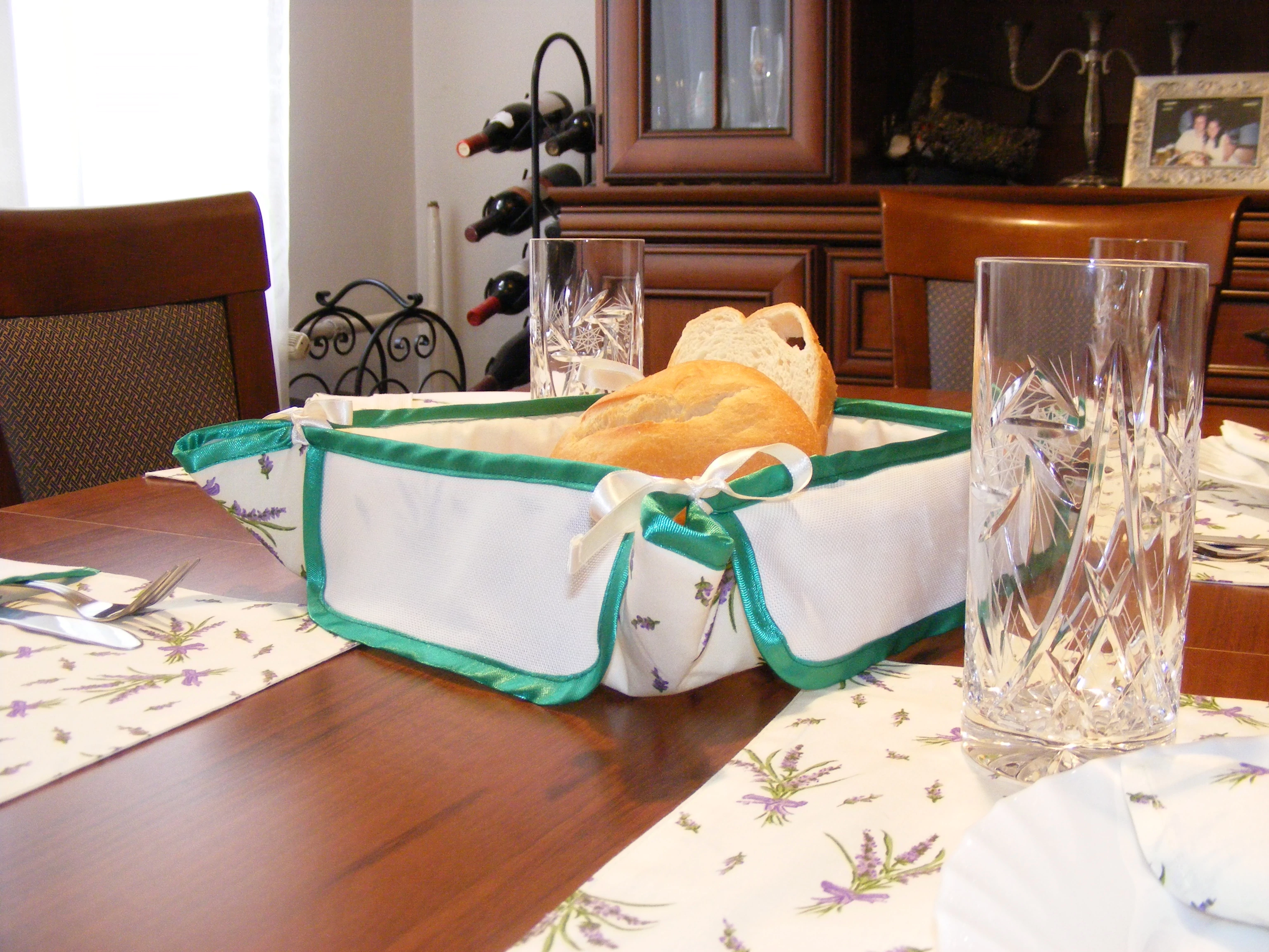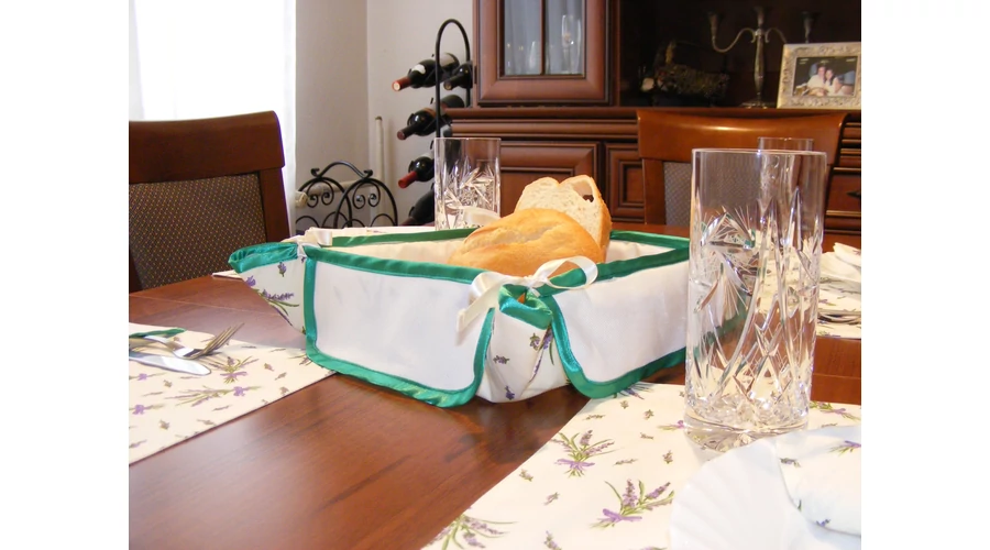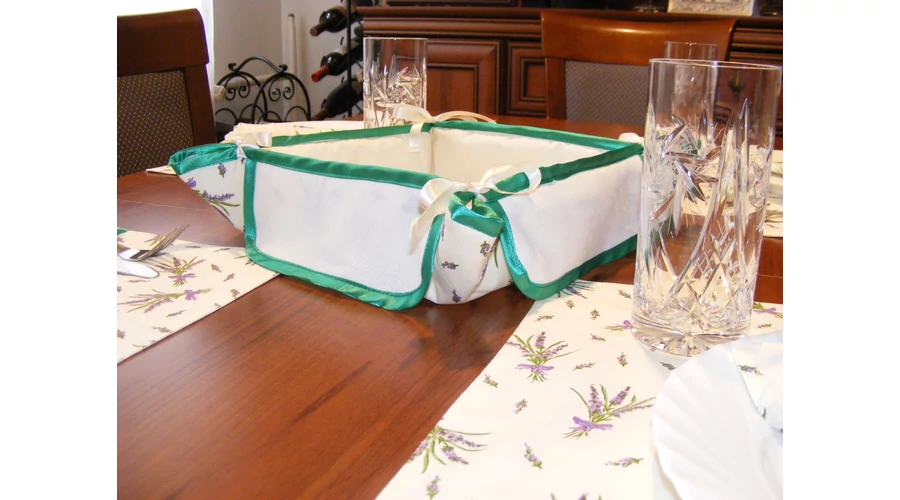 Hímezhető kenyérkosár-levendulás-zöld szegéllyel