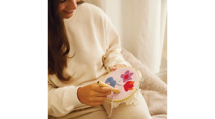 A kezdő készlet lépésről lépésre mutatja meg a lyukasztótű segítségével ezt a fajta hímzéstechnikát. A doboz mindent tartalmaz amire szükség lehet a kész termék befejezéséhez.