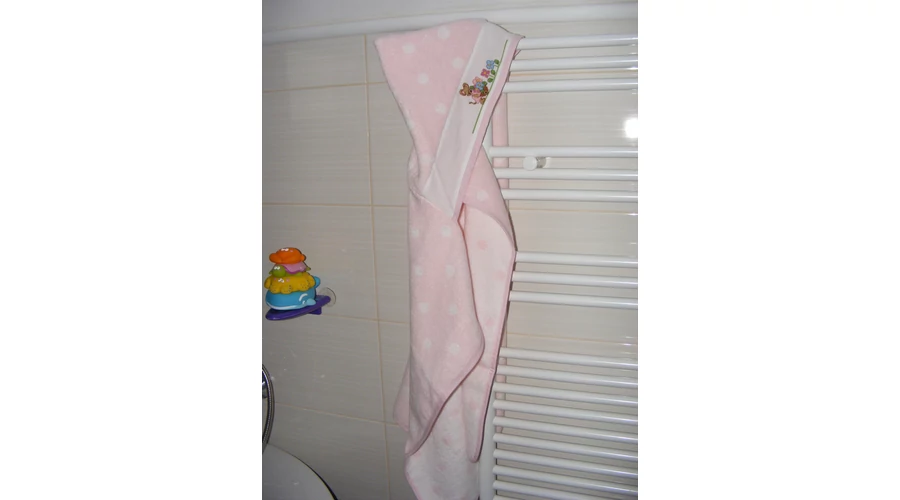 Hímzett kapucnis törölköző-rózsaszín-pöttyös-egér mintával