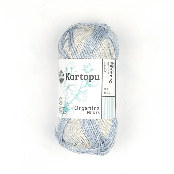 Kartopu Organica Prints 100% mercerizált, fényes és lágy színátmenetes pamut fonal. Kiválóan alkalmas mindenfajta baba és felső ruházat, kiegészítők elkészítéshez.