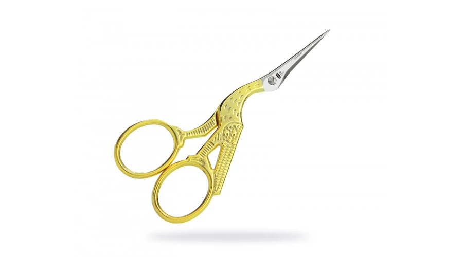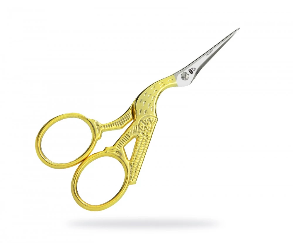 Szépen kidolgozott arany színű darus kézimunka olló mérete 9 cm.