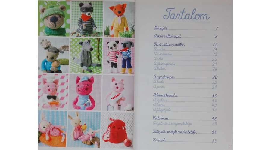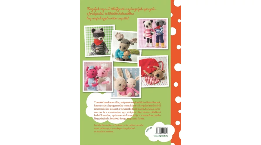 Tizenkét karakteres állatfigura, 35 kiegészítő és egy nagy hátizsák, amelyeket még a kezdők is könnyedén elkészíthetnek, mert csak a legegyszerűbb technikákat és horgolóöltéseket kell ismerniük.