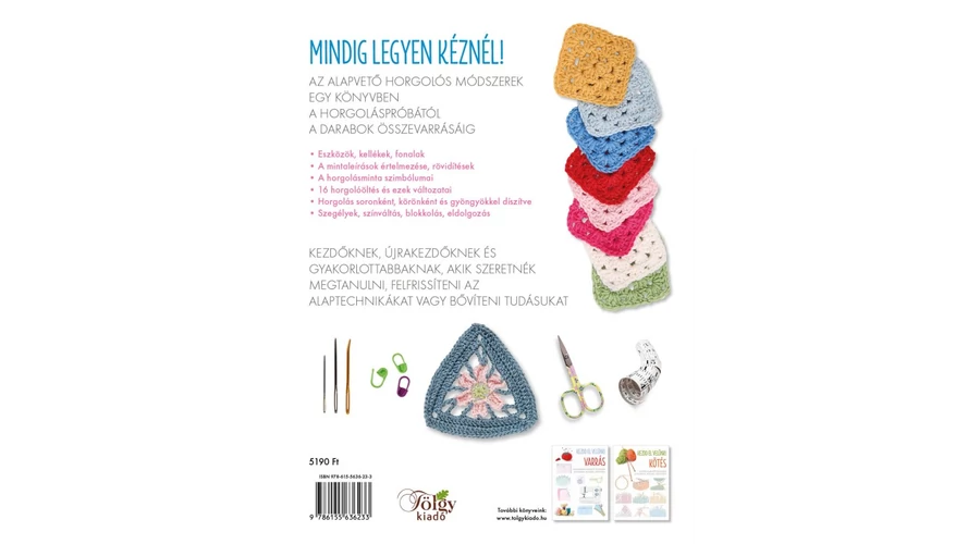 Előfordult már veled, hogy horgoltál valamit, és egy olyan horgolóöltésre került sor, amit nem ismersz vagy ezer éve nem gyakoroltál? Hogy is van ez? Ilyenkor elég előkapni ezt a könyvet, és fellapozni az ominózus öltésnél. Érdemes tehát a horgolótűk közelében tartani ezt az amigurumizáshoz vagy ruhadarabok, kiegészítők horgolásához egyaránt hasznos segédanyagot.
