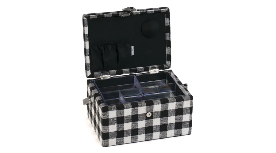 A közepes méretű varrókosár előnye, hogy a varráshoz, hímzéshez használt nélkülözhetetlen eszközöket átlátható módon, egy helyen tudja tárolni. Kis helyen elfér, ezért utazáskor könnyen szállítható.
