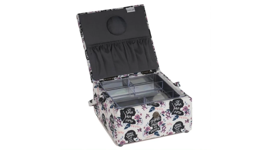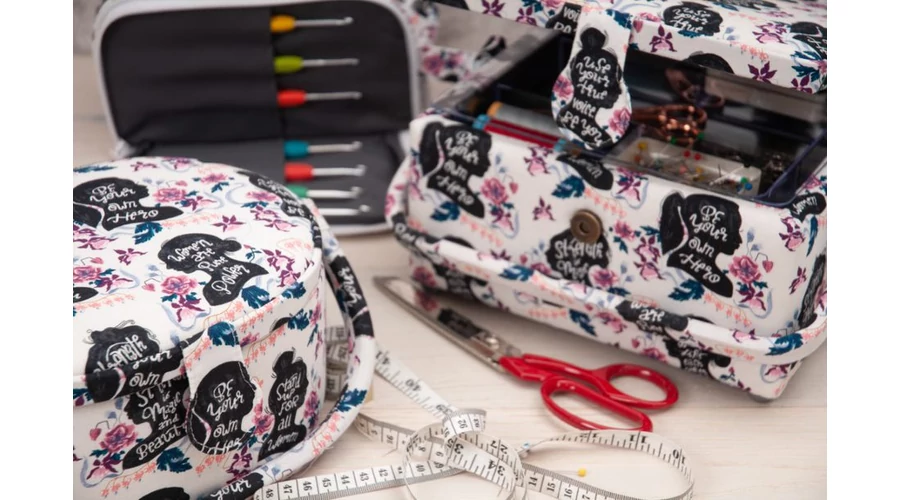A közepes méretű varrókosár előnye, hogy a varráshoz, hímzéshez használt nélkülözhetetlen eszközöket átlátható módon, egy helyen tudja tárolni. Kis helyen elfér, ezért utazáskor könnyen szállítható.