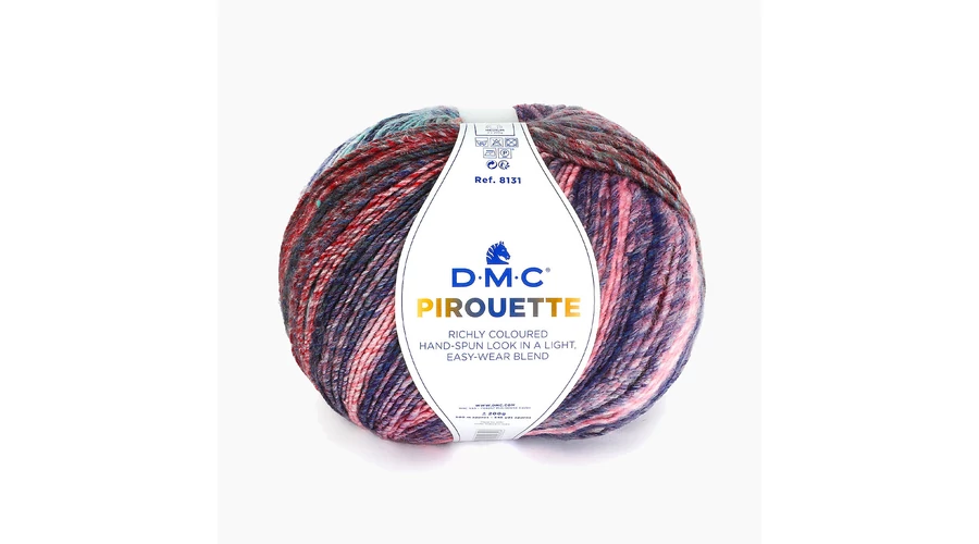 Piruette a DMC egyik legnépszerűbb kötőfonala. Többszínű, melynek színváltozása finom átmenetet képez, ami nagyon természetes megjelenést kölcsönöz a fonalnak. 100 % akril tartalmú fonal, mely alkalmas őszi, téli ruházat pl. sapka, sál, pulóver, kardigán, poncsó elkészítéséhez. Nagyon puha, meleg,kellemes tapintású fonal. Öt színű színskálával rendelkezik Könnyen és gyorsan köthető, horgolható, ideális takaró készítéséhez is.