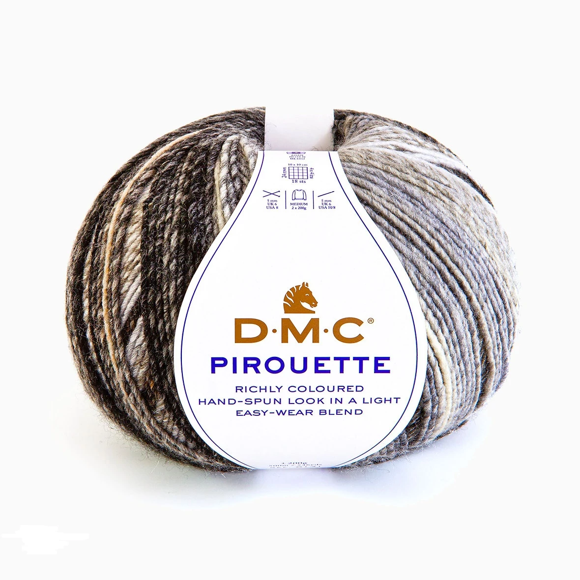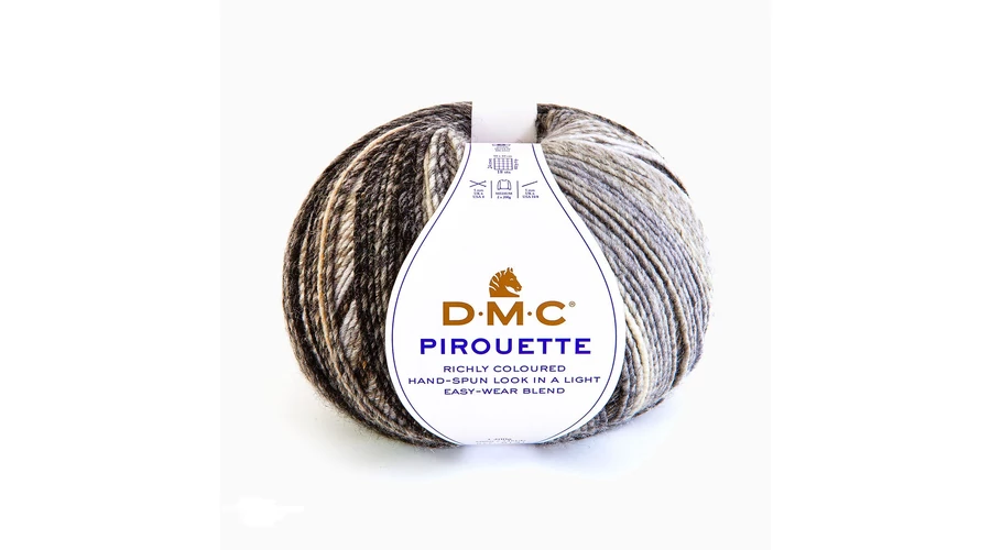 Piruette a DMC egyik legnépszerűbb fonala. Többszínű, melynek színváltozása finom átmenetet képez, ami nagyon természetes megjelenést kölcsönöz a fonalnak. 100 % akril tartalmú fonal, mely alkalmas őszi, téli ruházat pl. sapka, sál, pulóver, kardigán, poncsó elkészítéséhez. Nagyon puha, meleg,kellemes tapintású fonal. Öt színű színskálával rendelkezik Könnyen és gyorsan köthető, horgolható, ideális takaró készítéséhez is.