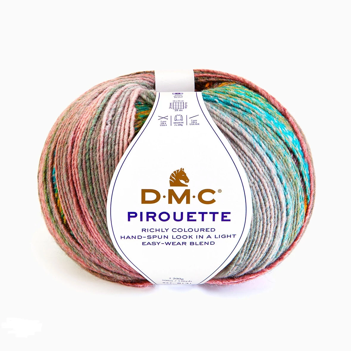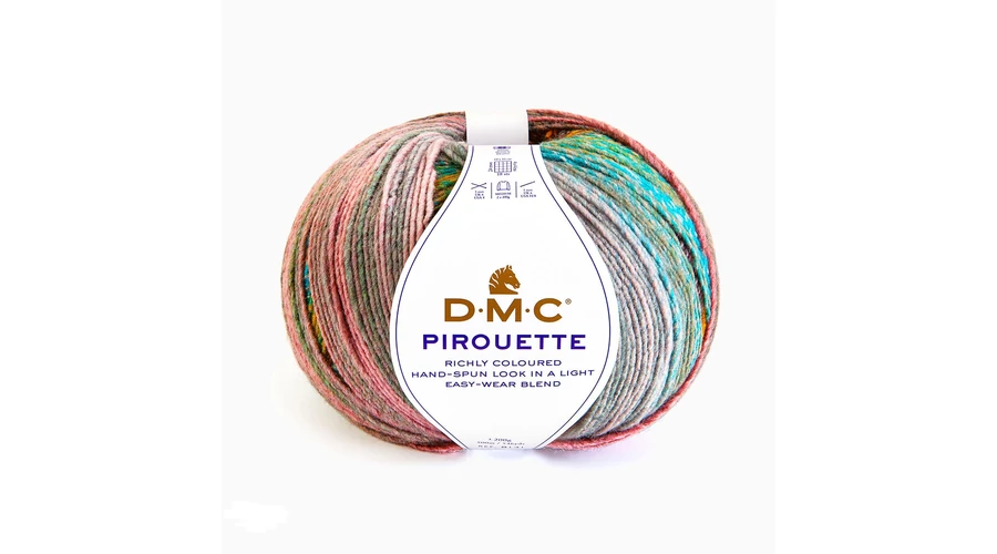 Piruette a DMC egyik legnépszerűbb kötőfonala. Többszínű, melynek színváltozása finom átmenetet képez, ami nagyon természetes megjelenést kölcsönöz a fonalnak. 100 % akril tartalmú fonal, mely alkalmas őszi, téli ruházat pl. sapka, sál, pulóver, kardigán, poncsó elkészítéséhez. Nagyon puha, meleg,kellemes tapintású fonal. Öt színű színskálával rendelkezik Könnyen és gyorsan köthető, horgolható, ideális takaró készítéséhez is.