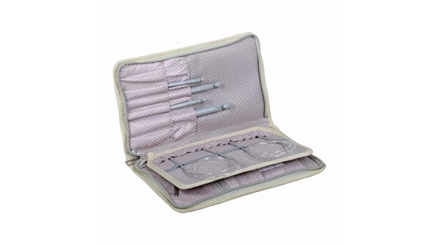 Tárolja egy helyen a különböző méretű kötő-és horgolótűket illetve kisebb eszközöket pl. mérőszalag, szemjelölő, olló stb.  A belső zsebek használatával tartsa tisztán holmiját és tartozékait a portól, sérülésektől és elvesztéstől.