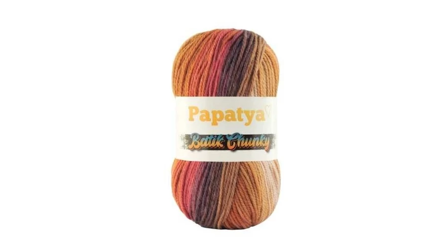A Papatya Batic Chunky gyönyörűen festett, kellemes tapintású, 100%-os prémium akril színátmenetes fonal. Míg a Papatya Batik fonalat 3,5-4 tűvel ajánlott készíteni, addig a Papatya Batik Chunky fonalat 5-6 tűvel.