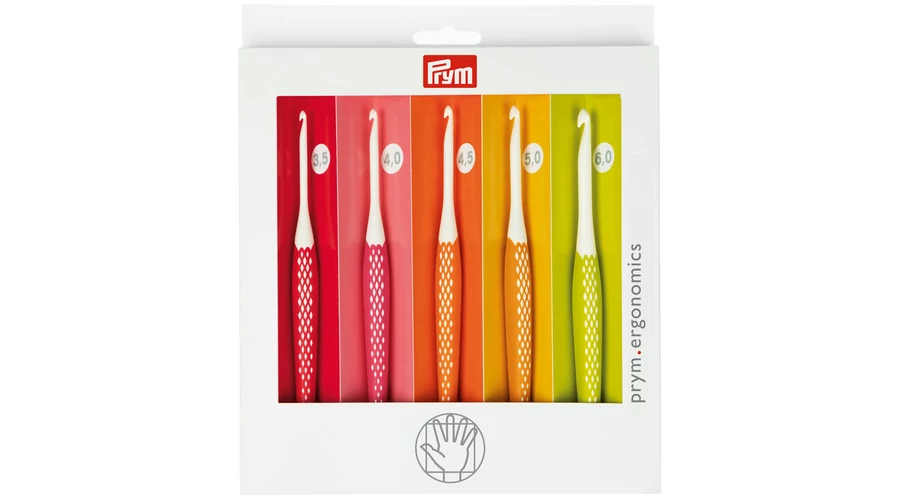 A készlet 5 darab különböző méretű ergonomikus horgolótűt tartalmaz.