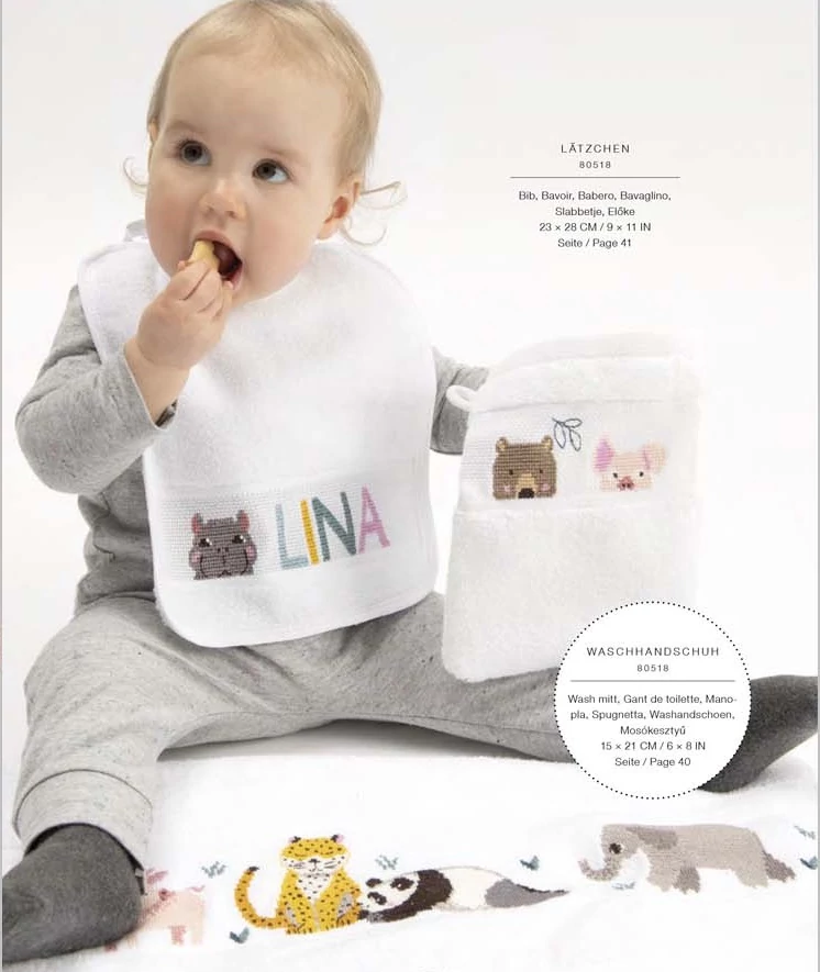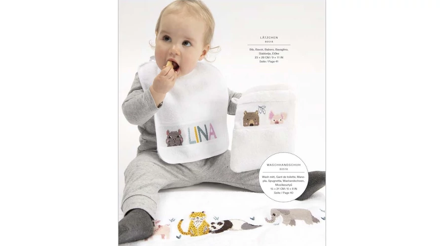 Rico design keresztszemesen hímezhető előke kiváló minőségű, pehelykönnyű, puha frottír anyagból készült, mely megtartja alakját, tartósságát, akár 60 fokon mosva. Szárítógépben szárításra is alkalmas. Pihe puha szálainak köszönhetően kellemes viselet a babának.