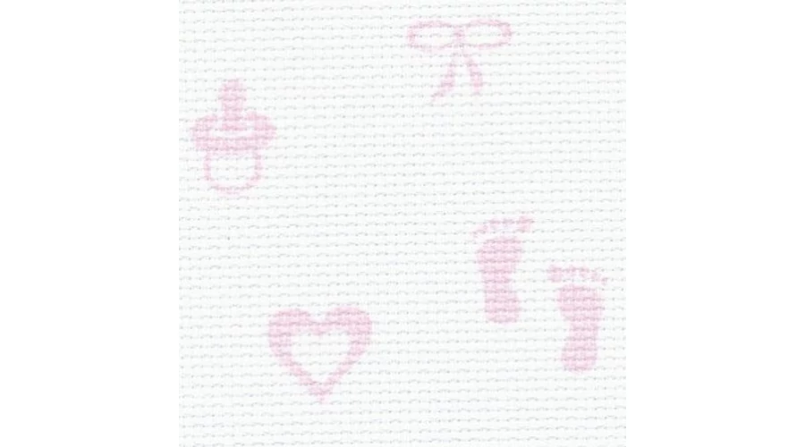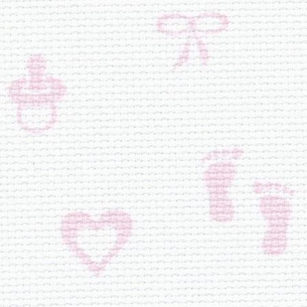 Színe: fehér, apró rózsaszín szív.masni,lábnyom,cumi,babakocsi,hintaló mintával