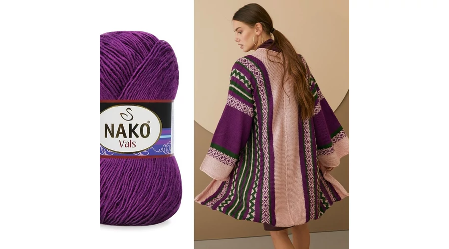 Nako Vals fonal rendkívül izgalmas színkombinációjának köszönhetően, tökéletes ruházati cikkekhez, kiegészítőkhöz. Készítsen belőle stólát, kendőt, sálat vagy gyerek takarót!