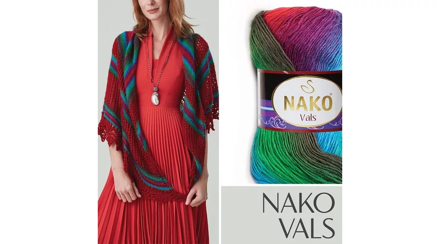 Nako Vals fonal rendkívül izgalmas színkombinációjának köszönhetően, tökéletes ruházati cikkekhez, kiegészítőkhöz. Készítsen belőle stólát, kendőt, sálat vagy gyerek takarót!