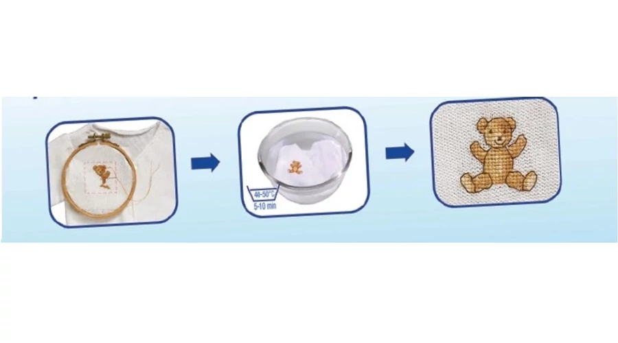Kivágott anyagot rá kell varrni a hímezni kívánt felületre és keresztszemes technikával könnyen elkészíthető. A kihímzett terméket meleg vízbe kell helyezni és a kanava automatikusan elolvad.