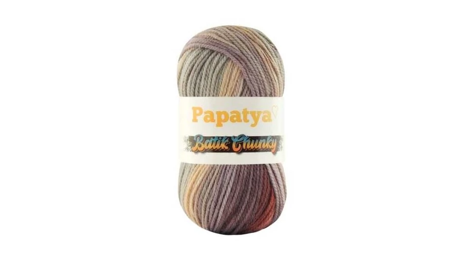 A Papatya Batic Chunky gyönyörűen festett, kellemes tapintású, 100%-os prémium akril színátmenetes fonal. Míg a Papatya Batik fonalat 3,5-4 tűvel ajánlott készíteni, addig a Papatya Batik Chunky fonalat 5-6 tűvel.