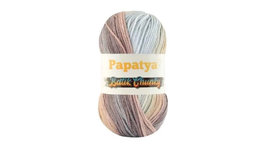A Papatya Batic Chunky gyönyörűen festett, kellemes tapintású, 100%-os prémium akril színátmenetes fonal. Míg a Papatya Batik fonalat 3,5-4 tűvel ajánlott készíteni, addig a Papatya Batik Chunky fonalat 5-6 tűvel.