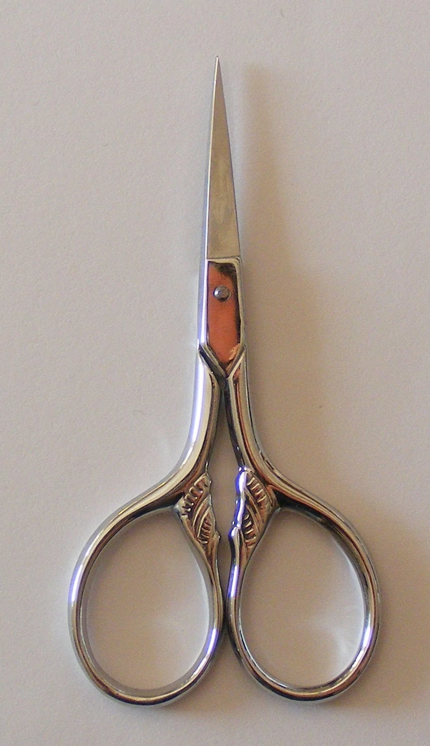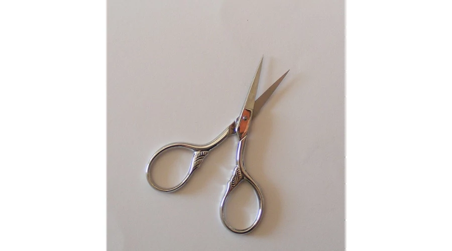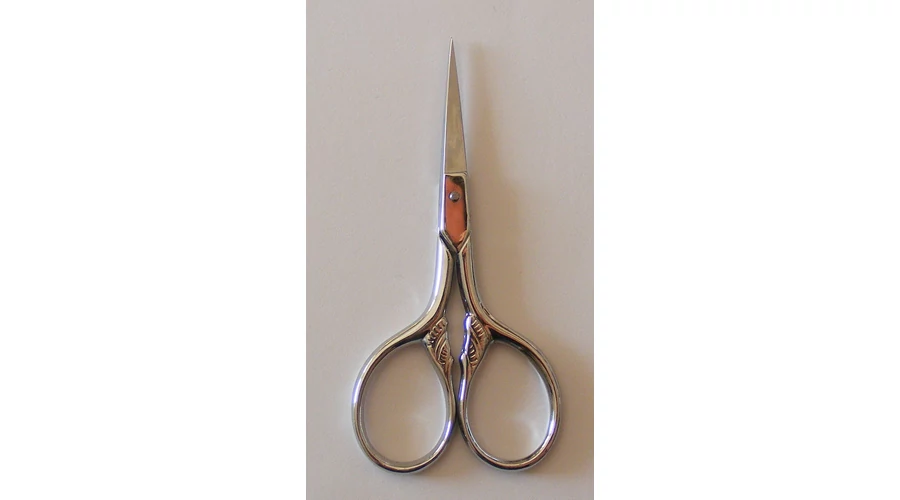Szépen kidolgozott króm színű darus kézimunka olló melynek mérete 9 cm.