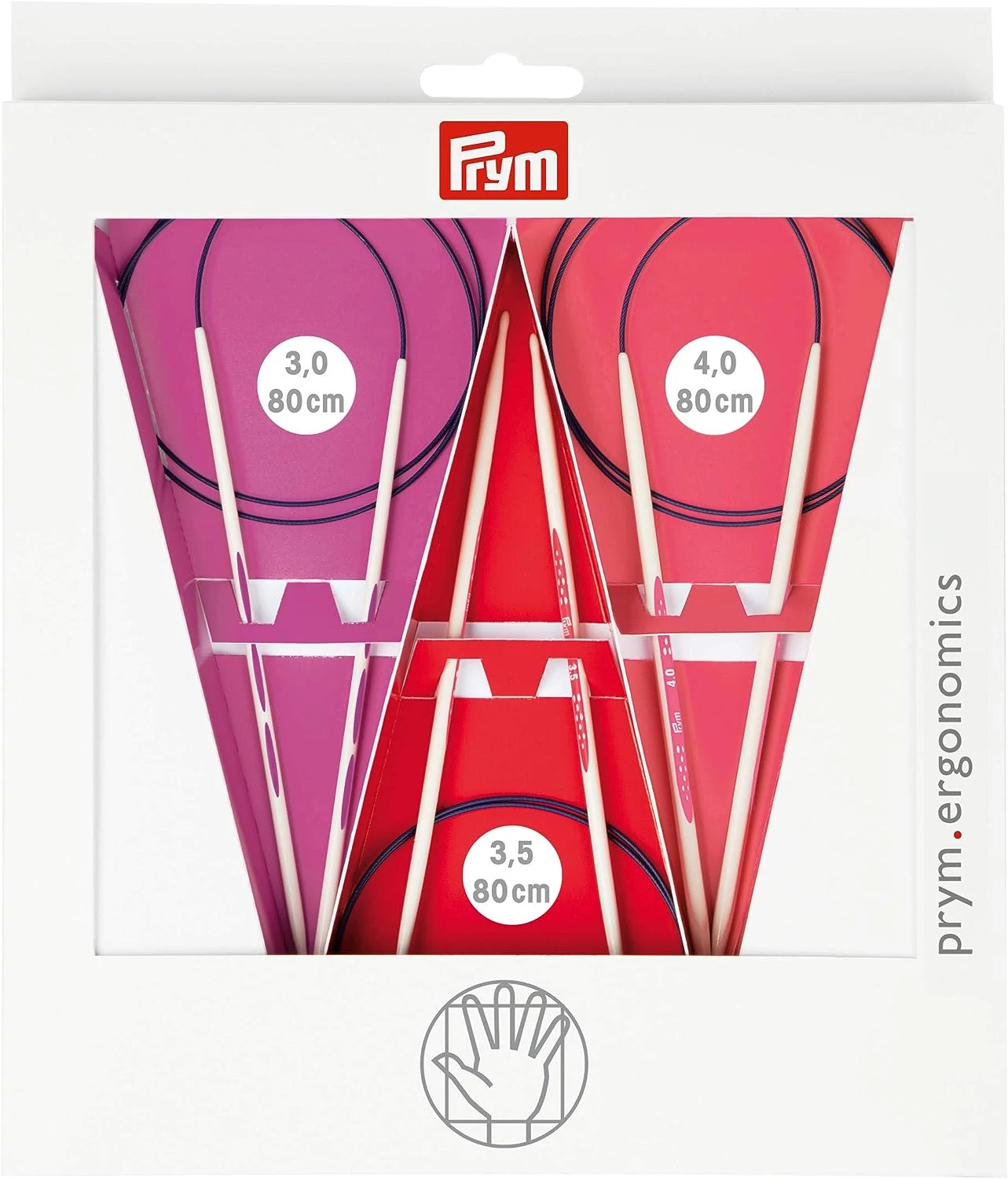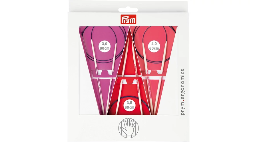 A Prym ergonomikus készlet 3 db alabástromfehér körkörös kötőtűből áll, 3,0 mm, 3,5 mm és 4,0 mm vastagságban. Ami különleges, hogy ezek a színes körkötőtűk egyenként nem lehet megvenni, hanem kizárólag csak ebben a készletben kaphatók. A kör alakú kötőtűk kiváló minőségű, nagy teljesítményű műanyagból készülnek, ezért enyhén rugalmasak. A stabil, nagyon finom acélkábel kiváló minőségű műanyaggal van bevonva, amely megakadályozza a spirálhatást, és így megakadályozza a kábel összegabalyodását. A könnycsepp alakú hegy a prym.ergonomics kötőtűt kezdők számára is alkalmassá teszi, mivel sokkal egyszerűbb a szálvezetés, és nem csúszik le olyan gyorsan a fonal a hegyéről. Az öltések a kötés során is különösen könnyen átcsúsznak a tűkön. A tűméretek színkóddal vannak ellátva.
