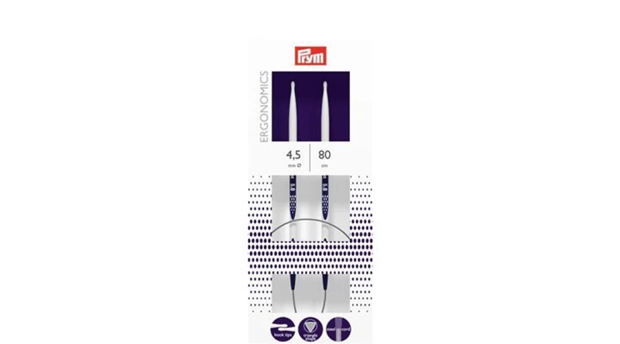 Könnyebbé, kényelmesebbé teszi a kötést. A körkötőtű szintetikus anyagból készült, hajlítható. Ez az anyag biztosítja a csendes kötést is, így nincsenek zörgő zajok. A csepp alakú pont segítségével a prym ergonomikus kötőtűk jól illeszkedik a kezdők kezében, mert a menetvezetés sokkal könnyebb, és a fonal nem csúszik le olyan gyorsan. A tűk alakjának megváltoztatása miatt, az öltések könnyen felszedhető a tűtesten. A kör alakú kötőtű stabil, nagyon finom acélzsinórját kiváló minőségű szintetikus anyag borítja. Itt nincs spirálhatás, a zsinór nem gubancolódik össze. A kiválasztott fonal vastagságához válasszon megfelelő méretű kötőtűt.
