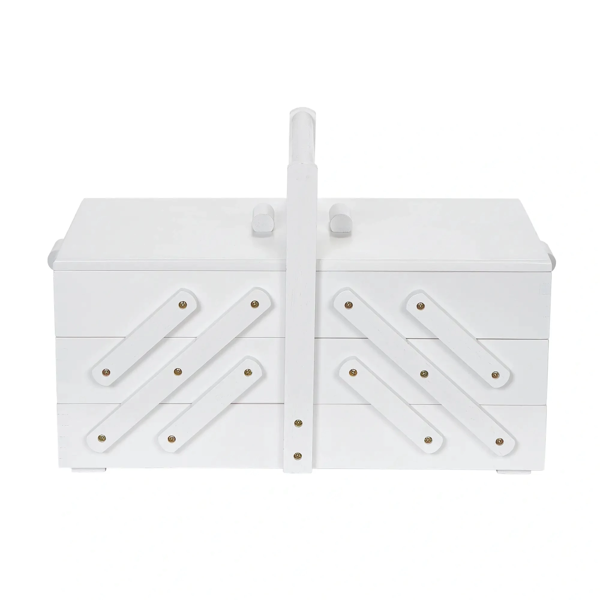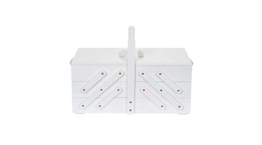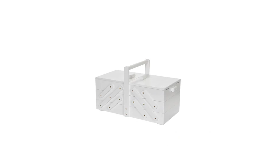 Prym nagy méretű varrókosara, különösen nagy tárolóhelyet biztosít a kézimunka során használt eszközöknek, hiszen a népszerű harmonika rendszernek köszönhetően összesen 3 szinten van lehetőség tárolni az apró kellékeket. A felső rekeszek oszthatók, az alsó szintek nagyobb tárgyaknak adnak helyet.