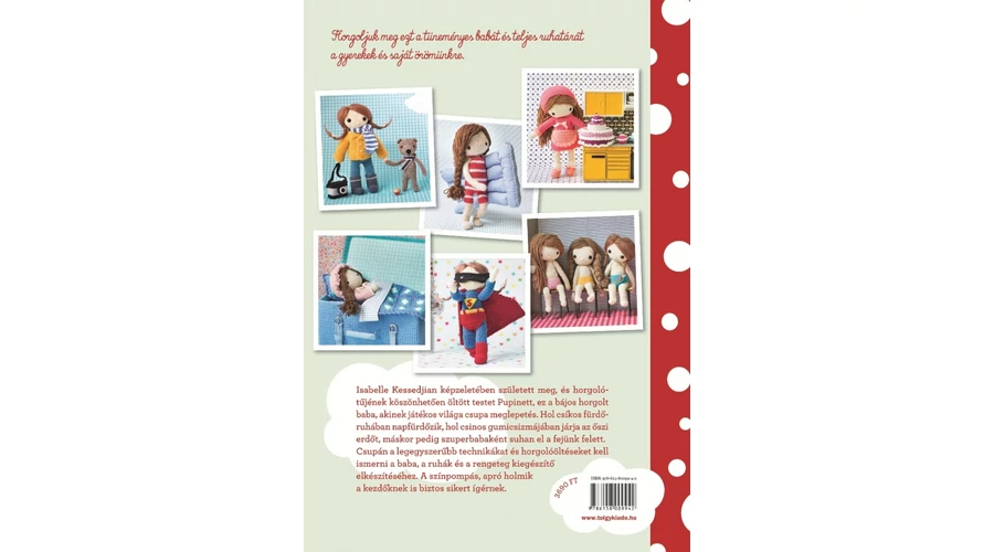 Pupinett, a bájos öltöztetőbaba elkészítéséhez csak a legegyszerűbb technikákat és horgolóöltéseket kell ismerni, amelyeket a könyv is részletesen bemutat. Babánk igazi egyéniség lesz, ha a könyvben található sokféle frizuraötletből merítve tesszük őt egyedivé.