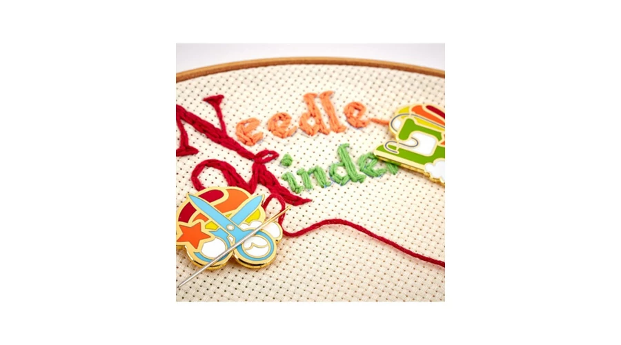 A tűmágnes két részből áll, az egyik a képen látható gyűszű, a másik a mágnes hátoldalán lévő lapos, kerek mágnes. A két mágnes az anyagot fogja közre. Amikor fonalat cserél vagy csak parkolópályára tenné a hímzőtűt, akkor helyezze a varróeszközt a tűmágnesre.