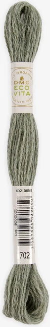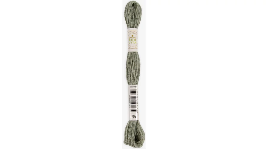 DMC Eco Vita hímzőfonal 100%-ban organikus, merinó gyapjú tartalmú fonal. Teljesen természetes összetevőkkel festették például dió, rebarbara, indigó és boróka. Az Eco Vita egy nagyon sokoldalú cérna, amely a kézműves technikák széles skálájához alkalmas. Egyenletes vastagsága és finom csavarása tökéletes kézi hímzéshez, keresztszemes hímzéshez, lyukasztótűhöz, szövéshez és javításhoz. A gyapjúszálat egyszálúként használják, és nem oszthatók. Körülbelül ugyanolyan vastagságú, mint a DMC Mouliné Spécial három szála. Hossza 16 méter.