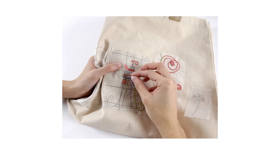 10x10 négyzetrácsokba rajzolja a hímezni kívánt mintát, ragassza rá a hímezni kívánt területre pl. táska, póló, nadrág stb. keresztszemes öltésekkel hímezze ki, miután elkészült, merítse langyos vízbe és a ragasztós papír feloldódik. Máris elkészült a varázslatos egyedi hímzés:-)